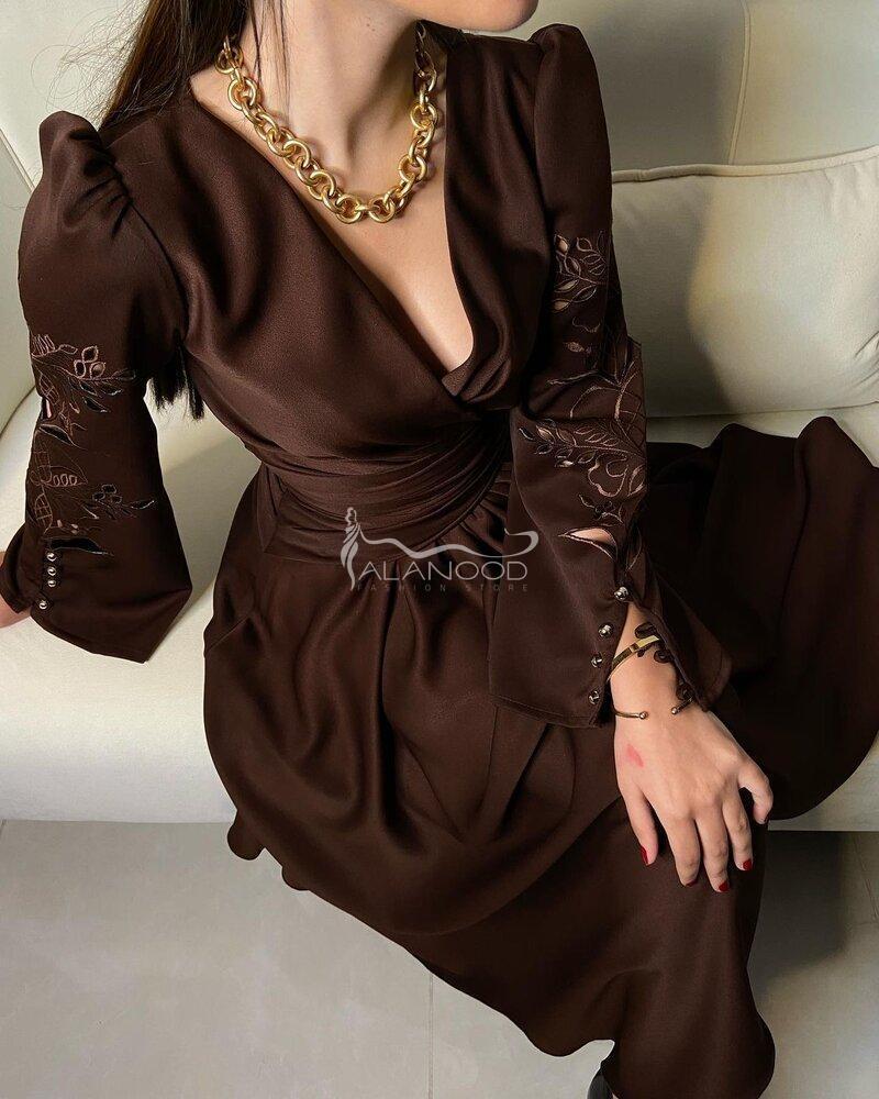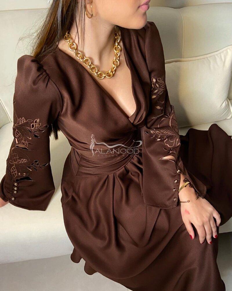 فستان بني قص حراري ناعم وأنيق، بخامة تفته حرير كريب، هو الخيار المثالي لكل امرأة تبحث عن الأناقة والراحة في إطلالتها. يتميز هذا الفستان بلونه البني الغني الذي يضفي لمسة من الفخامة، مع تصميم جذاب يبرز جمالك الطبيعي.