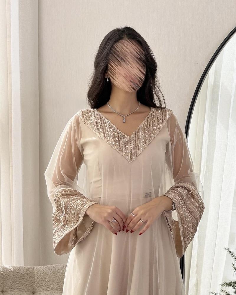 إذا كنت تبحثين عن الأناقة والفخامة، فإن فستان ناعم مطرز هو الخيار المثالي لك. يتميز هذا الفستان بلونه البيج الفاتح الجذاب الذي يضفي لمسة من الفخامة والجاذبية على إطلالتك. مصنوع من قماش تفته كوري عالي الجودة، يوفر لك إحساسًا فخمًا ومريحًا على البشرة، مما يجعله مثاليًا للاستخدام في مختلف المناسبات.