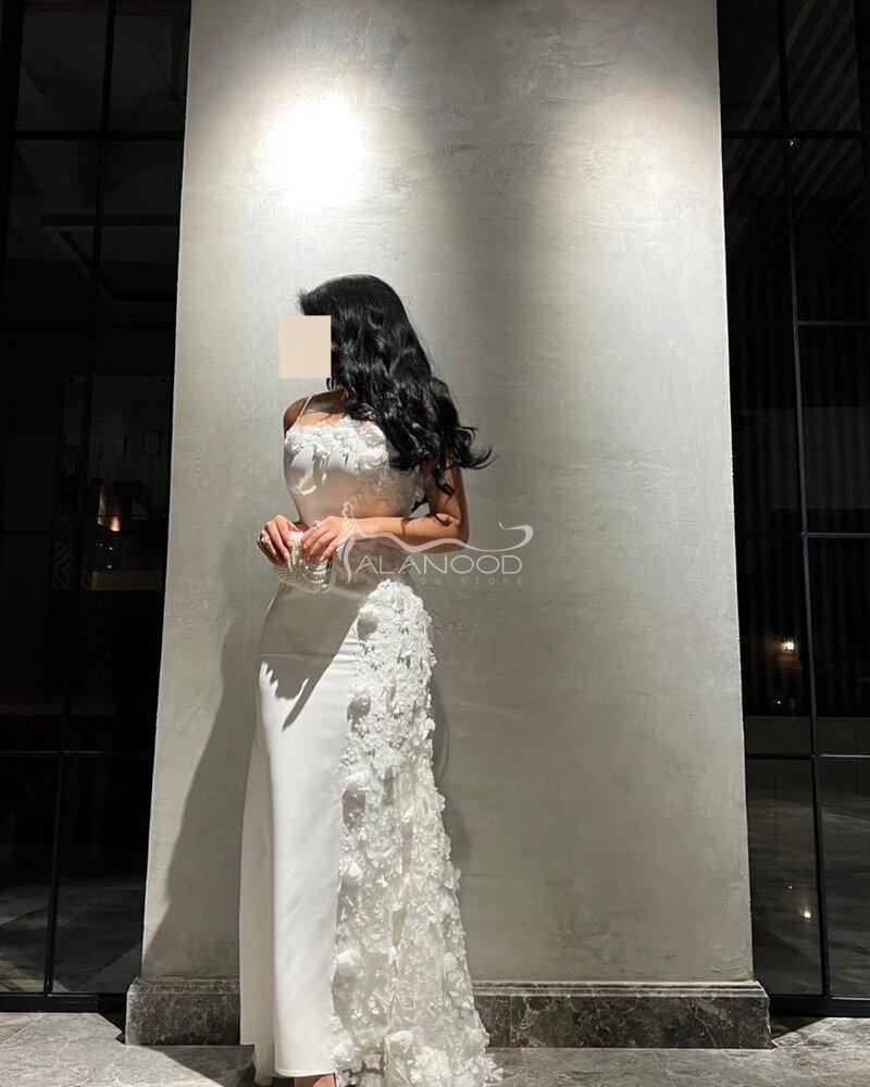 فستان ناعم بكلفة الورود البيضاء - لامع وأنيق للملكات والسهرات