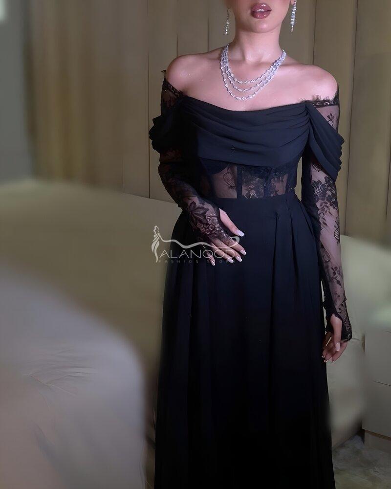 اجعلي هذا الفستان جزءاً من إطلالتك القادمة! لا تفوتي الفرصة لتكوني محط الأنظار في كل مناسبة. احصلي على فستان اسود دانتيل بخامة شيفون العنود العنزي الآن، وكوني متألقة دائماً!