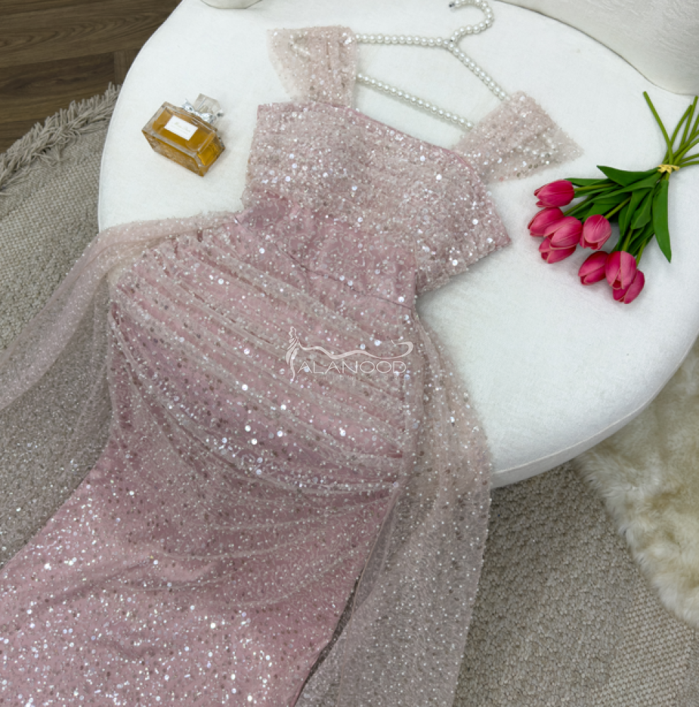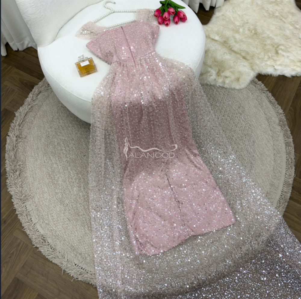 اكتشفي أناقة لا مثيل لها مع فستان طيف بكلفة سهرة راقي، الذي يتميز بتصميمه الأنيق واللامع. هذا الفستان هو الخيار المثالي لكل سيدة تبحث عن التميز في المناسبات الخاصة. يتميز بلون وردي فاتح مع لمسات براقة تعكس الضوء بشكل رائع، مما يجعله خيارًا مثاليًا لحفلات السهرات.