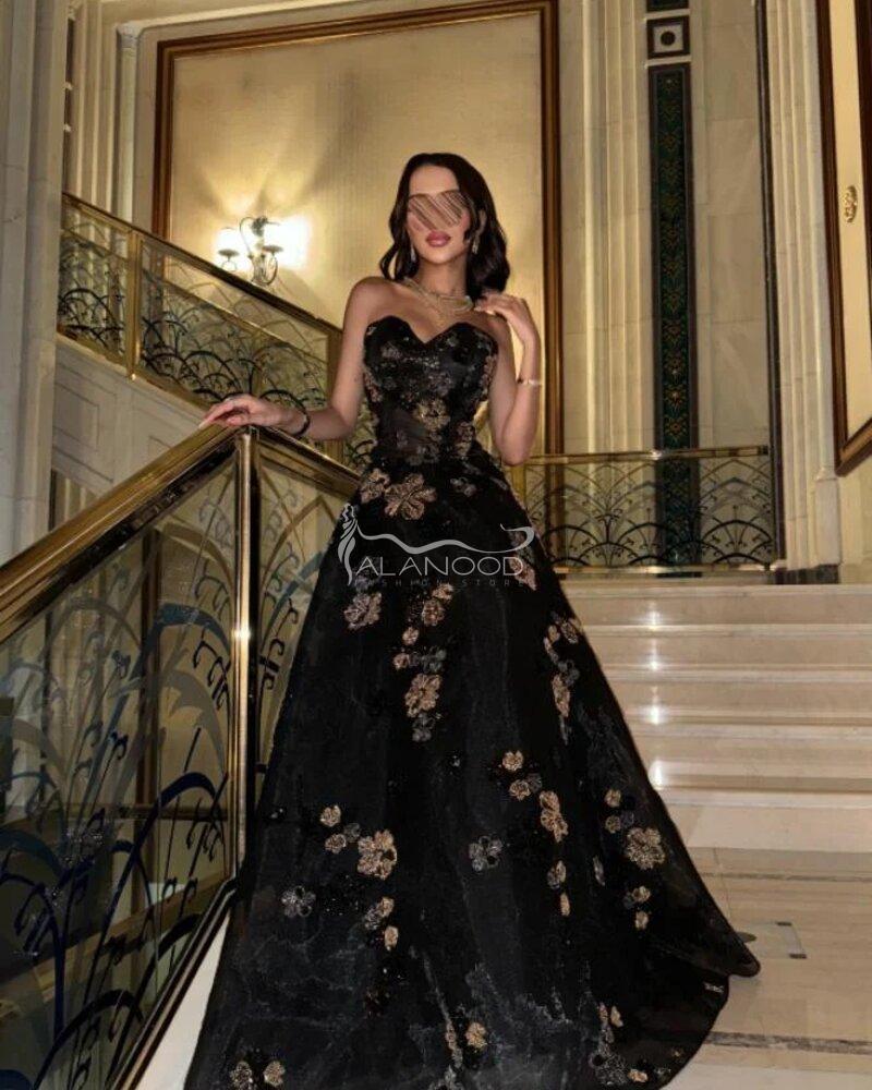 لا تفوتي فرصة اقتناء فستان سهرة طويل مزين بالزهور السوداء، فهو الخيار الأمثل لإضفاء لمسة من السحر على إطلالتك. تسوقي الآن واحصلي على إطلالة لا تُنسى!