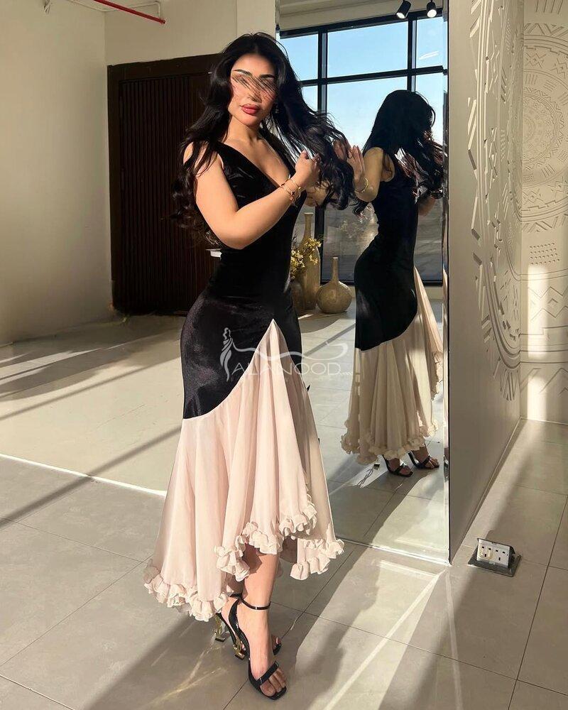 فستان حنين هو الخيار المثالي لكل سيدة تبحث عن الأناقة والفخامة في إطلالتها. يتميز بلونين الأسود ولحمي بتصميم فاخر يجمع بين الأناقة والراحة، مما يجعله خيارًا لا غنى عنه في خزانة ملابسك. يجذب الأنظار، مما يضفي لمسة من الفخامة والجاذبية.