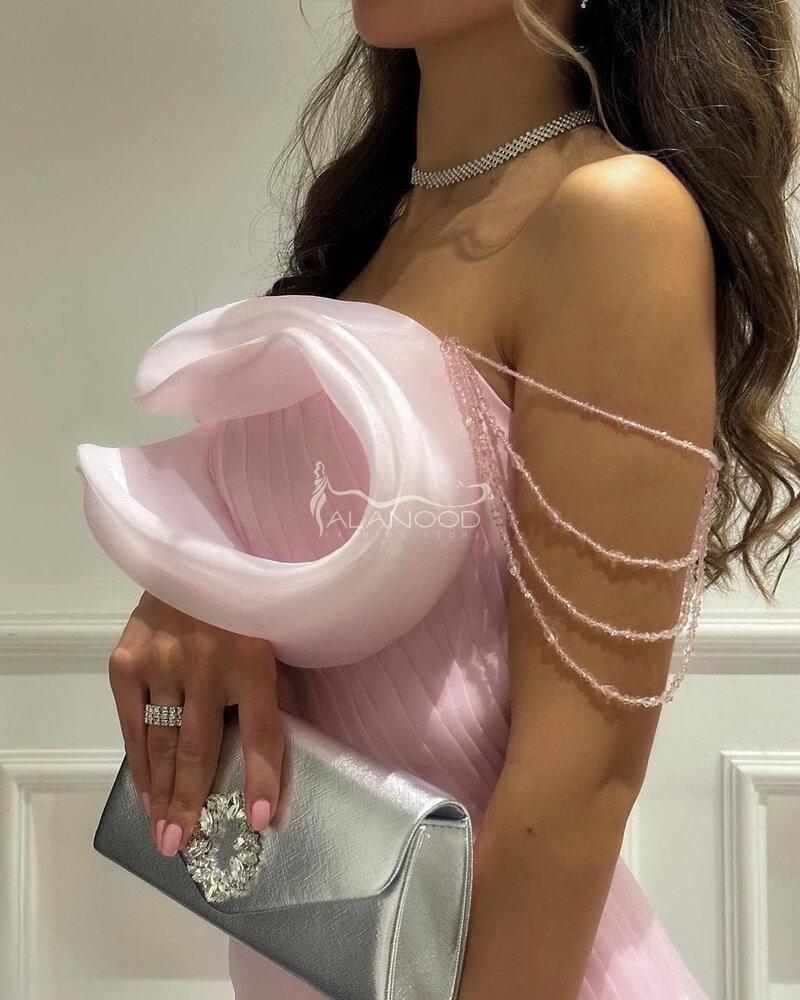 فستان وردي بتصميم مميز مع لمسة عصرية هو الخيار المثالي لكل سيدة تهتم بجمالها وأناقتها. يتميز هذا الفستان بلونه الوردي الفاتح الذي يضفي لمسة من الأنوثة والجاذبية. تم تصميمه من خامات عالية الجودة، مما يجعله خفيفًا وناعمًا على البشرة، مما يضمن لكِ الراحة طوال اليوم.