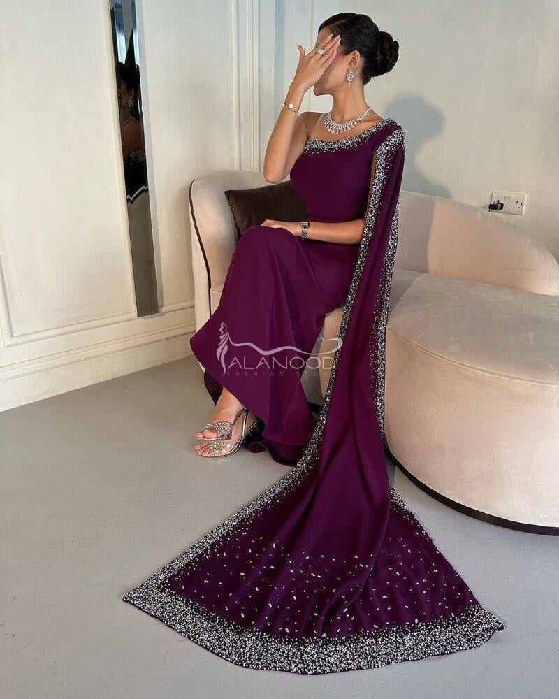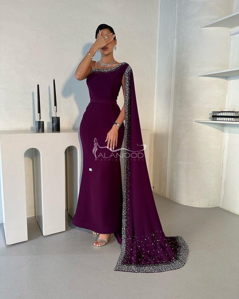 لا تفوتي الفرصة، تسوقي الآن واحصلي على فستان ناعم ارجواني بكلفة مطرزة يدوي فاخرة بتصميم عصري ليكون جزءًا من خزانتك!