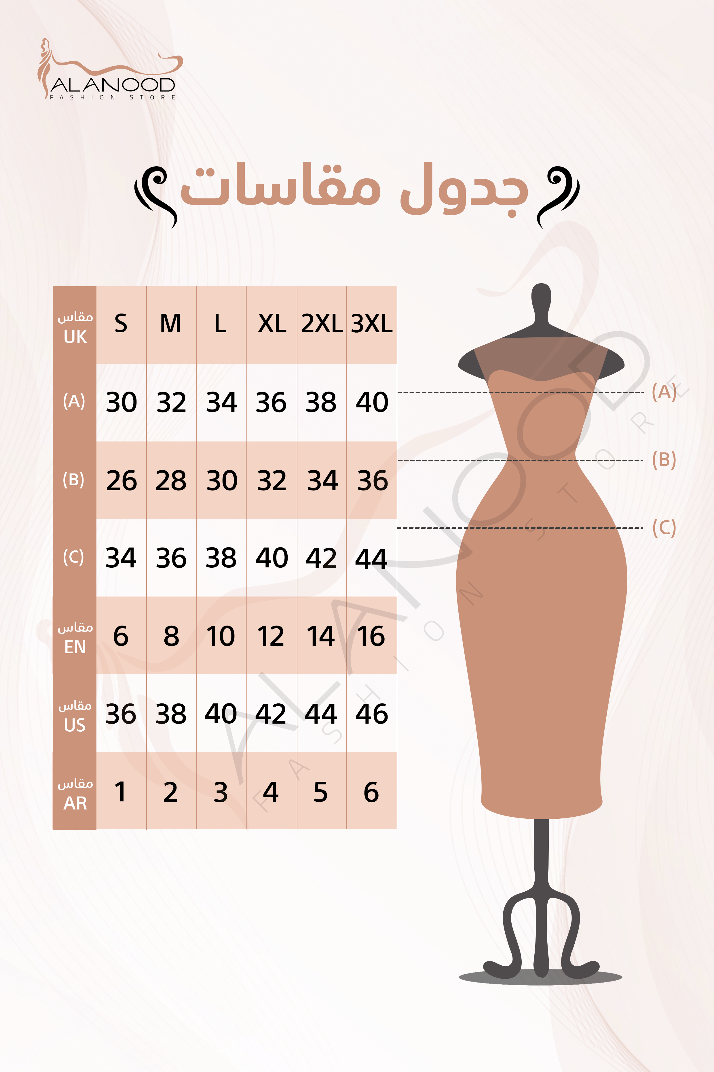 عزيزتي الأنيقة الرجاء التأكد من اختيار المقاس الصحيح.