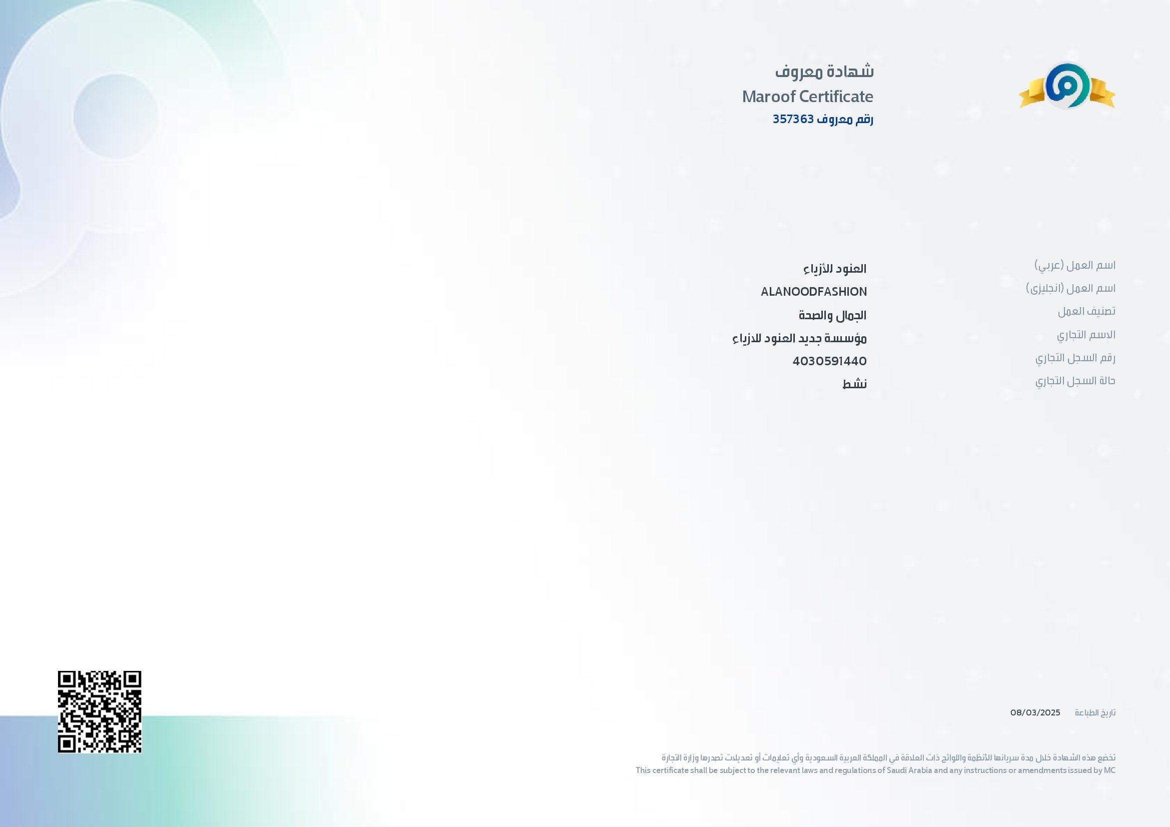 شهادة توثيق منصة معروف