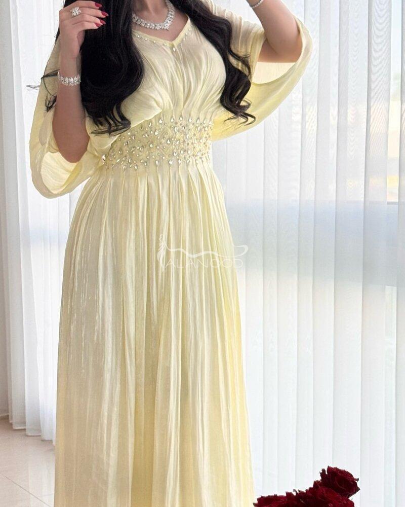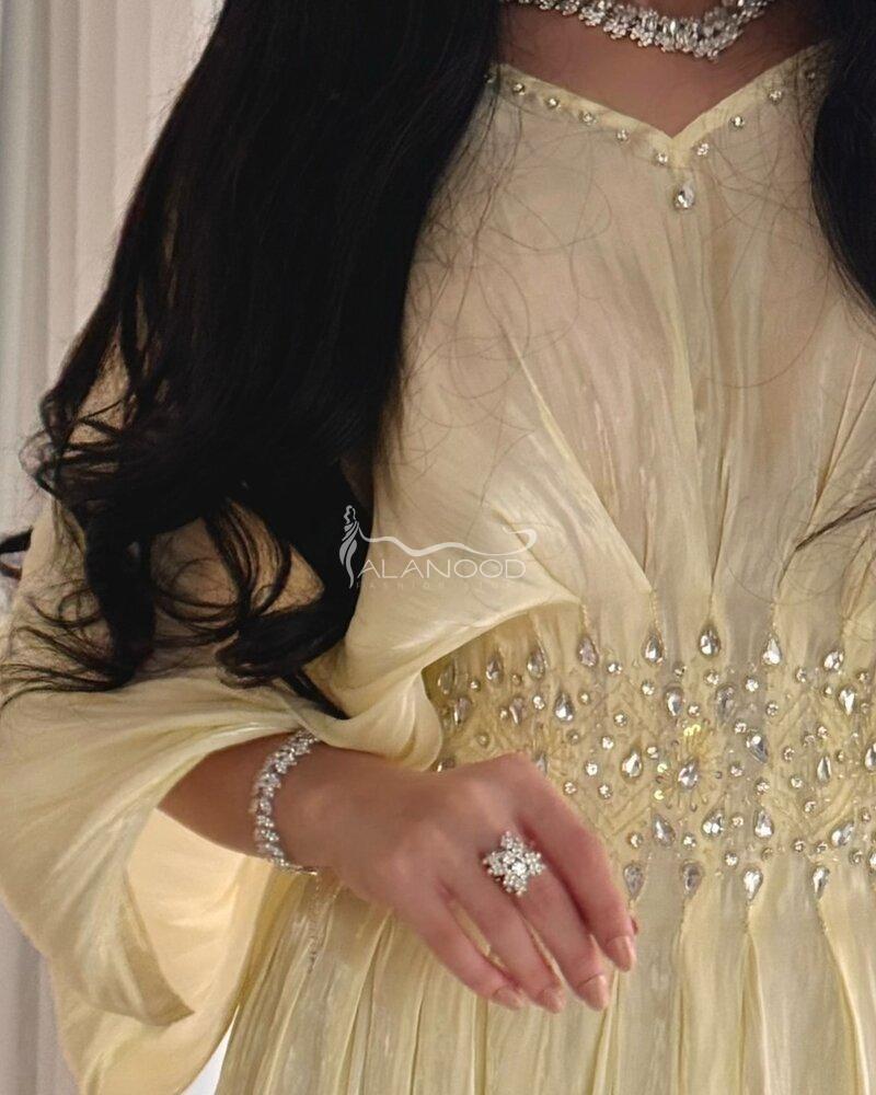 فستان عذاري أصفر أنيق فخم هو الفستان الذي سيجعل إطلالتك مميزة ولا تُنسى. لا تفوتي الفرصة لاقتناء هذا الفستان الرائع، الذي يجمع بين الفخامة والراحة. تسوقي الآن واستمتعي بإطلالة أنثوية رائعة ستجعل كل الأنظار تتجه إليك!