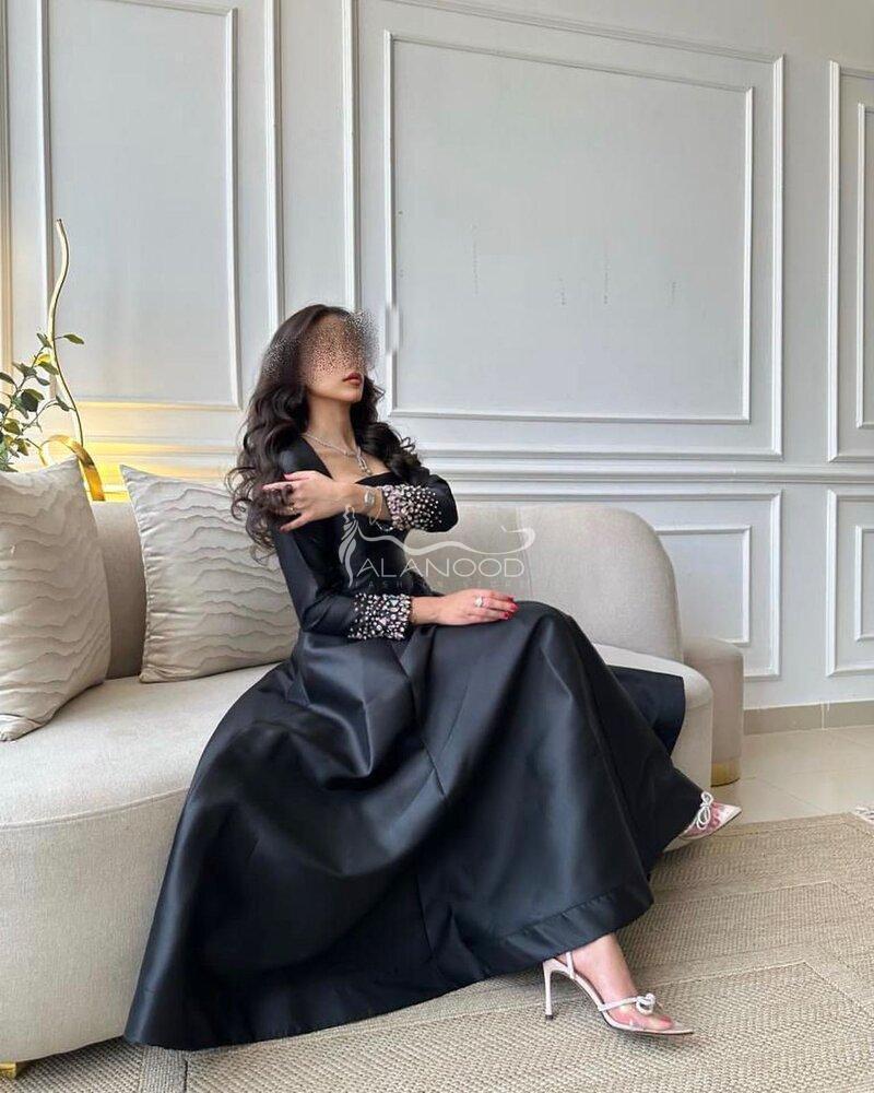 لا تفوتي الفرصة لتكوني محط الأنظار في كل مناسبة. تسوقي الآن واحصلي على فستان سهرة أسود باكمام طويلة مطرزة كرستال يدوي أنيق، واجعلي إطلالتك مميزة وفريدة!