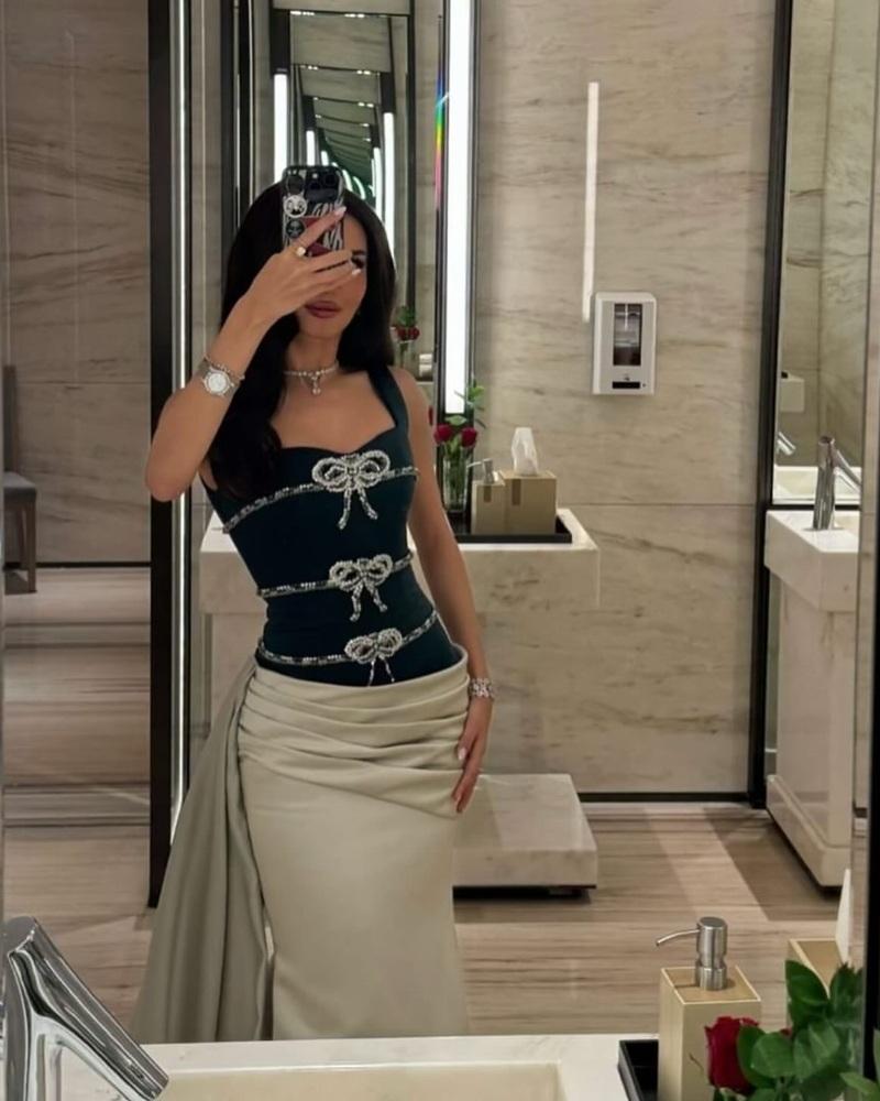 فستان مريم مناسبات وسهرة اخت المعرس ومناسب لجميع المناسبات السهرة والخاصة والعامة راقي وانثوي فخم اطلالة مميزة من تصميم العنود العنزي للازياء النسائية