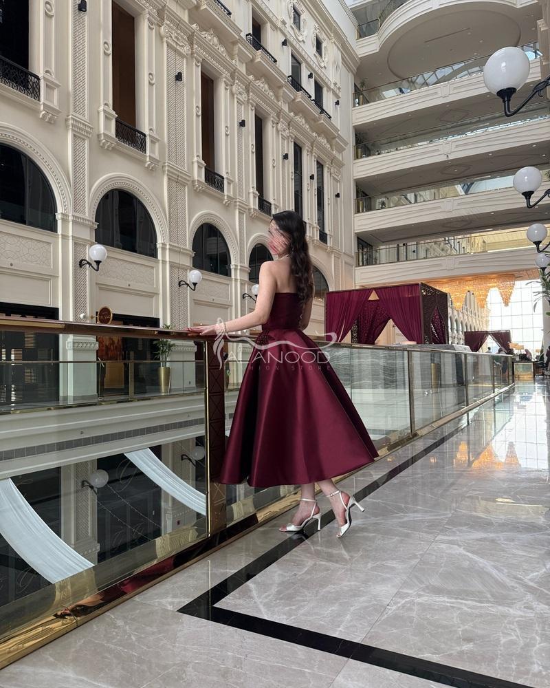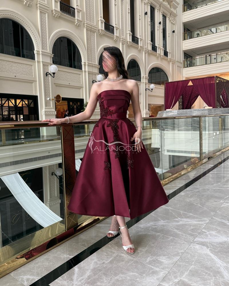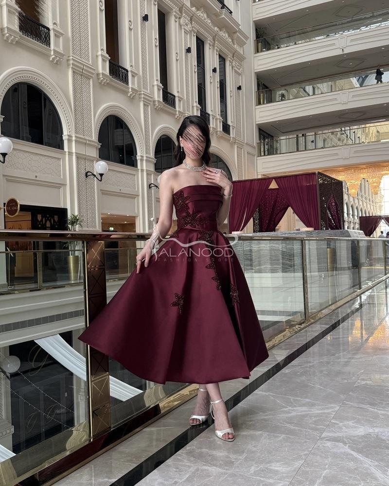 - الألوان: يأتي الفستان بلون عودي راقٍ يعكس ذوقك الرفيع.