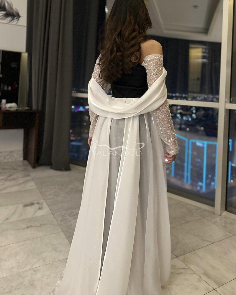 مميزات فستان سهره أسود وأبيض بتصميم أنيق: